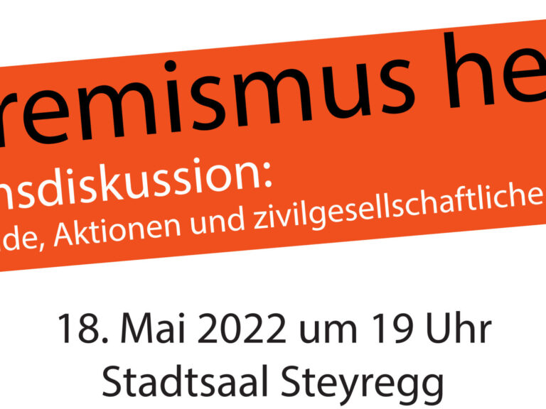 Wir laden am Mittwoch, den 18. Mai 2022 zu einer Podiumsdiskusion zum Thema Extremismus heute ein. Dabei sollen durch kurze Vorträge Hintergründe und Kenntnisstände erörtert werden. Es soll ein Überblick gegeben werden, welche Maßnahmen gegebenenfalls ergriffen werden. Diese reichen von Aktionen zivilgesellschaftlicher Initiativen bis zum Einschreiten des Verfassungsschutzes. Die Veranstaltung soll aufklären, wie man sich…