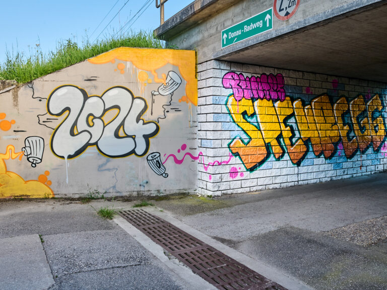 Die beiden Slogans „buntes Steyregg“ & „Respekt“ prangen seit Anfang Mai 2024 groß und farbenfroh in der Unterführung neben dem Imbiss Dörfler. Unser Graffiti-Künstler hat die hetzerischen Sprüche, die vorher dort zu lesen waren, bunt übermalt. Ein herzliches Danke für die schöne Gestaltung! Ganz fertig ist das Bild noch nicht, aber jede:r kann sich bereits…