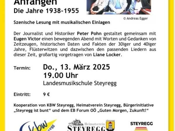 Eine Veranstaltung des Katholischen Bildungswerks Steyregg in Kooperation mit dem Heimatverein Steyregg, der Bürgerinitiative „Steyregg ist bunt“ und dem EB Forum OÖ „Guten Morgen, Zukunft!“ Peter Pohn, Eugen Victor & Liane Locker (v.l.n.r.) mit den Veranstalter:innen. Foto: privat. Geschichte aufzuarbeiten und diese einem breiten Publikum näher zu bringen, ist bekanntlich keine leichte Aufgabe. Einige von…